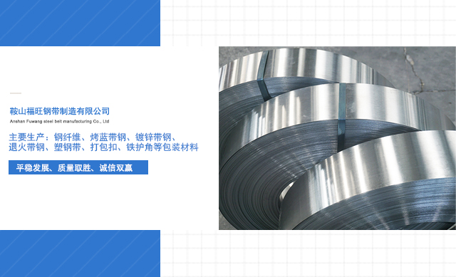 福旺钢带位于鞍山南部, 2010年成立,占地面积约一万一千平方米。具有现代化生产车间两千九百平方米、生产成品库五百平方米,还有办公及绿色园区等员工休闲区域,主要生产:钢纤维、烤蓝带钢、镀锌带钢、退火带钢、塑钢带、打包扣、铁护角等包装材料。企业年产量达2000吨以上。现已出口日、韩、美、法、俄等国家。